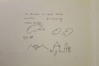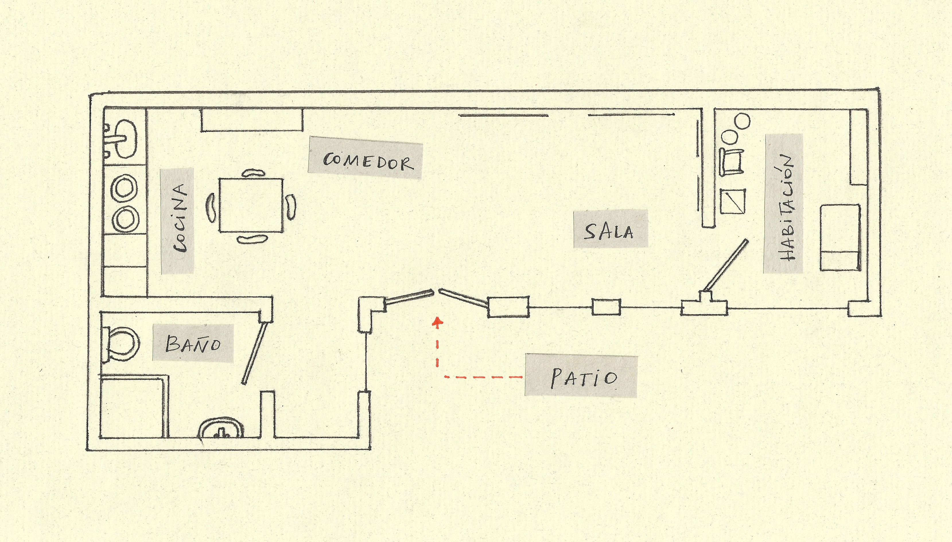 El espacio está habitado por dibujos obtenidos desde archivos (fotos, videos y cartas) y muebles fabricados por mi abuelo. Por toda la casa está desplegado un mapa de memoria de mi familia.
