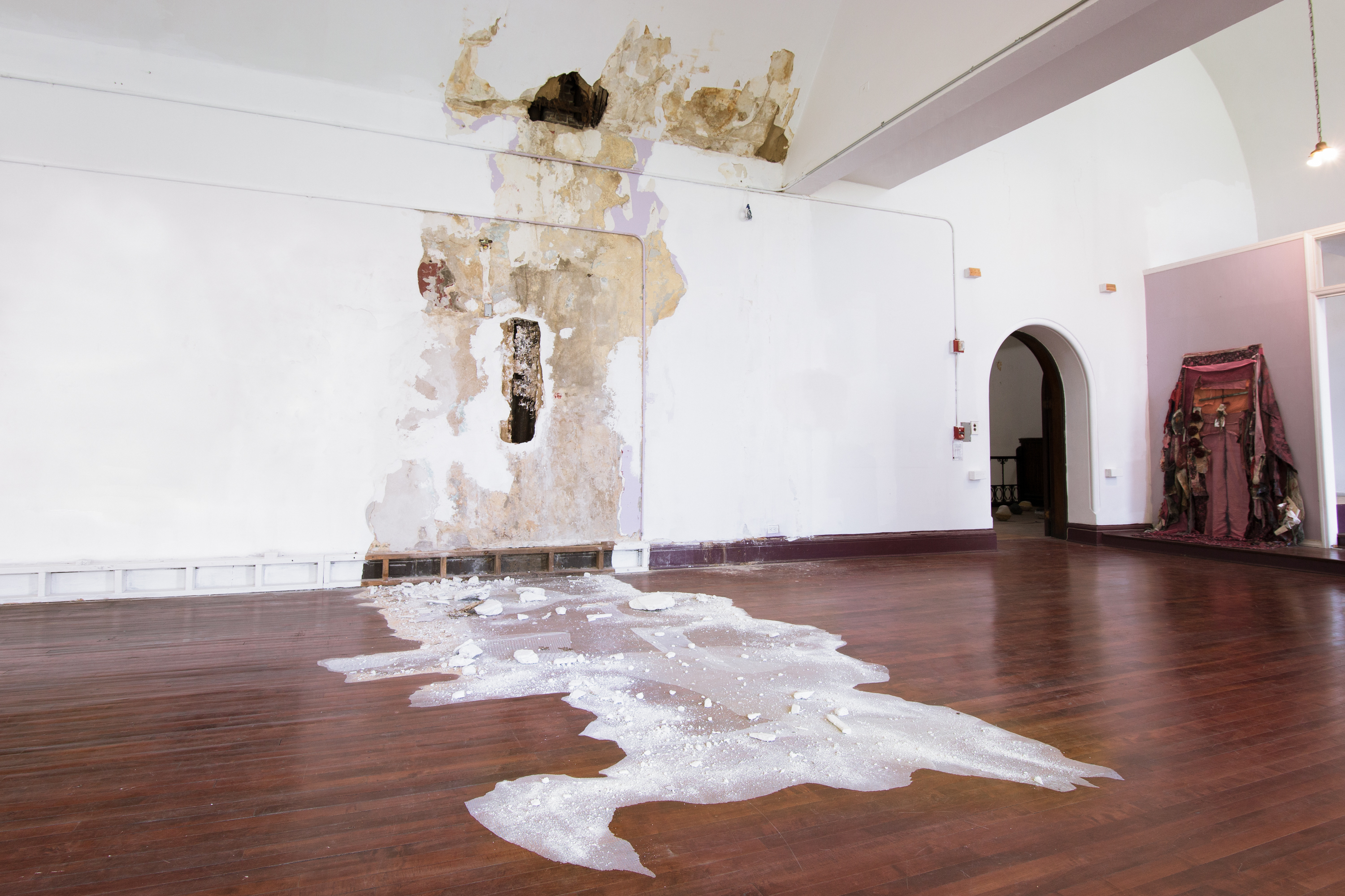 Site-specific intervention created from existing fissure on the wall caused by a leak.