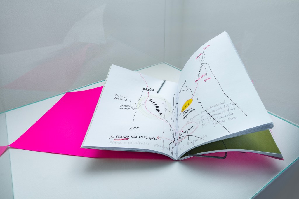 En nuestra práctica artística, los diálogos son el método de creación. Nuestras conversaciones empezaron en abril del 2016 con un intercambio de reflexiones verbales y gráficas y lecturas en colectivo, enriquecidas por el encuentro a pesar de la distancia generacional. Nuestro pensamiento alrededor de las dinámicas de los sistemas vivos y complejos, tal como un jardín, ha sido expresado en varios artículos, imágenes, mapas mentales, talleres, videos e instalaciones. Como práctica poética, hemos compartido varios talleres con artistas y educadores indagando alrededor de la pregunta ¿cómo cultivamos una comprensión de la realidad interrelacionada que nos permita configurar otras maneras de vivir juntxs?