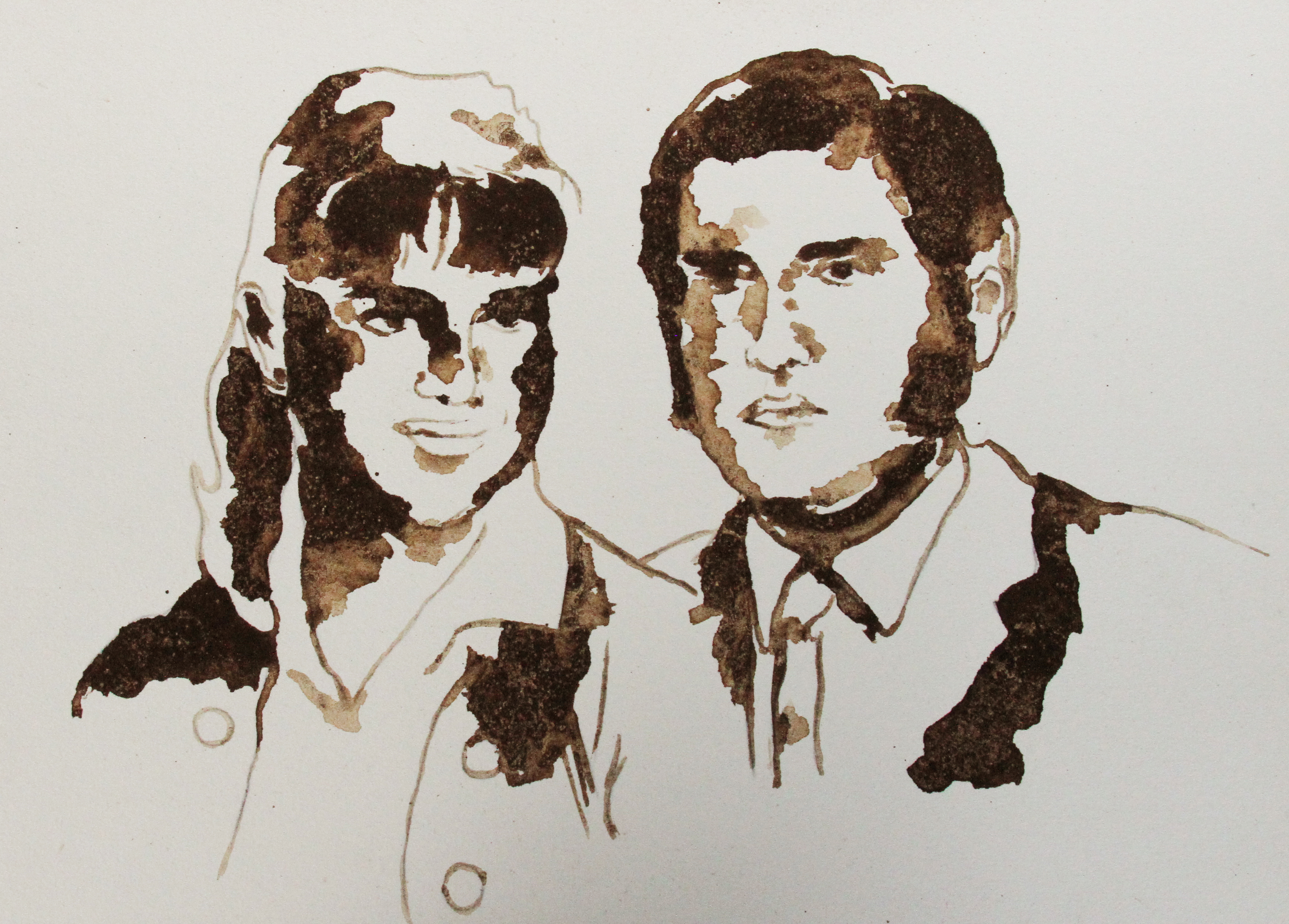 - Matrimonio: la huella es una serie de dibujos obtenidos de retratos de mis abuelos, abuelas y padres. Los dibujos fueron realizados con afrecho de café sobre cartón.
