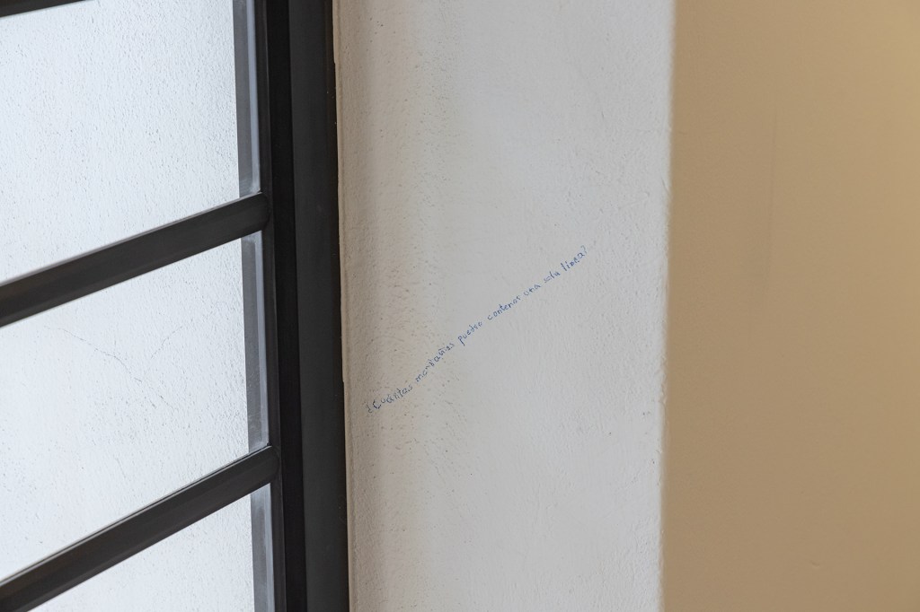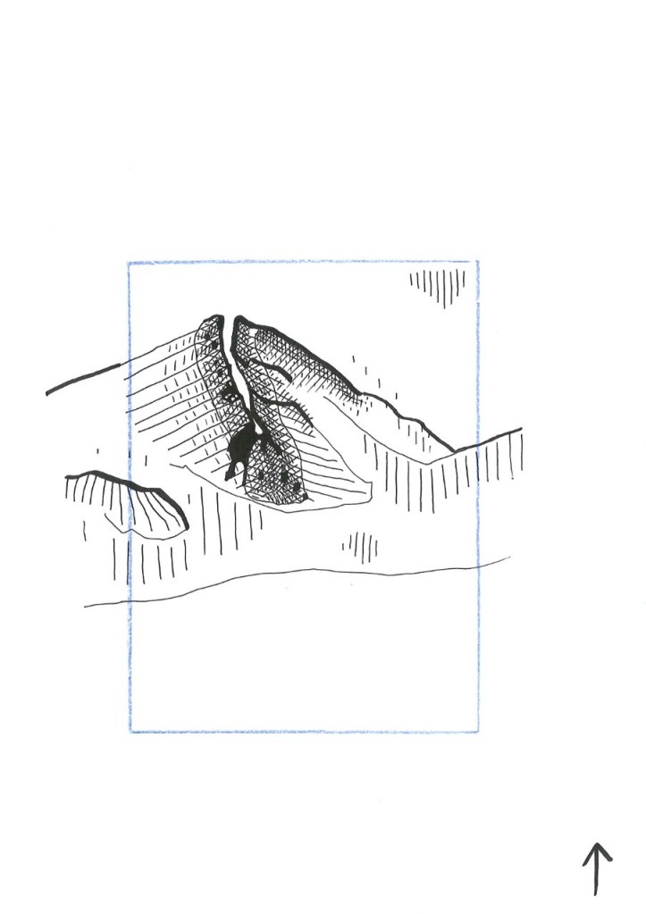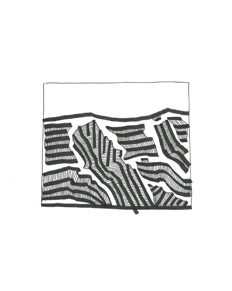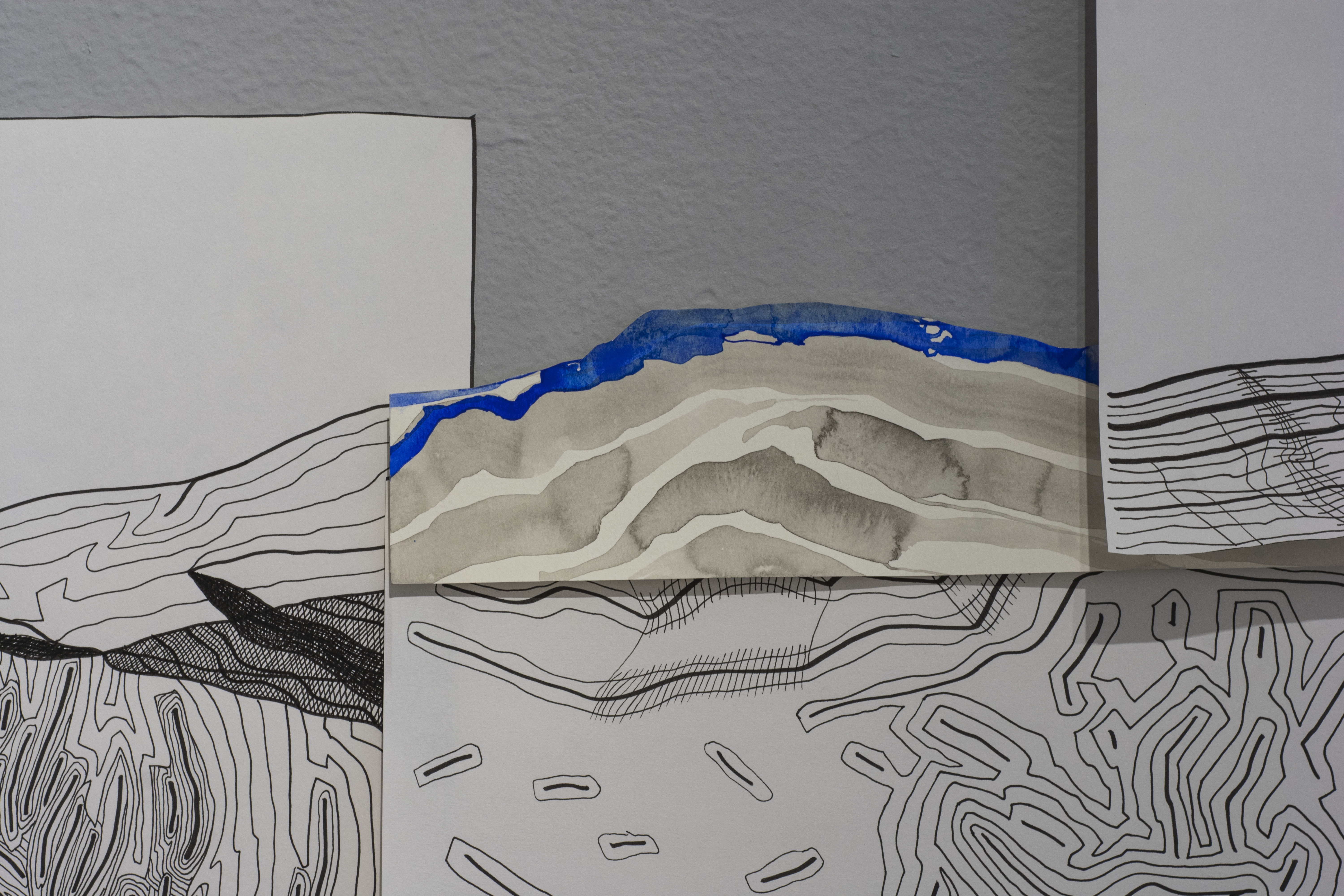 Entre 2019 y 2023, he trabajado en un pequeño estudio en Quito-Ecuador y la ventana del estudio da al Cerro Auqui. La ventana está situada en una posición clave, por lo que abre la vista a la montaña, las casas, las plantaciones de la ladera, las irregularidades del terreno y al cielo. Después de trabajar en este lugar durante varios meses, me di cuenta de que la ventana era el elemento que más me atraía de la habitación: la posibilidad de abrir la mirada de esa manera. La experiencia de estar en este lugar específico y mirar al Auqui a través de la ventana, ha dado forma a una serie de dibujos y pinturas que exploran mi relación con el paisaje, mientras estas líneas irregulares se convierten en mi territorio primario e influyen (y se extienden en) las líneas que trazo. Este trabajo visual registra la experiencia de habitar en una ciudad en medio de los Andes, rodeada de quebradas y las formas en las que las entidades más que humanas (como las montañas, las nubes o el clima) informan una manera de ver y una manera de dibujar.